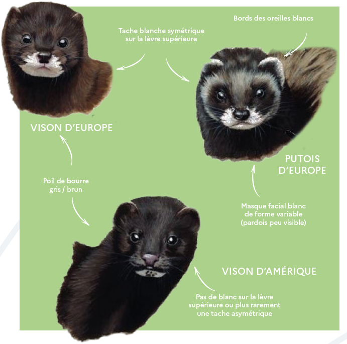 Petit mustélidé au corps allongé, souple et au pelage brun uniforme, le Vison d'Europe est très semblable au Putois d’Europe et surtout au Vison d’Amérique, espèce exotique envahissante.